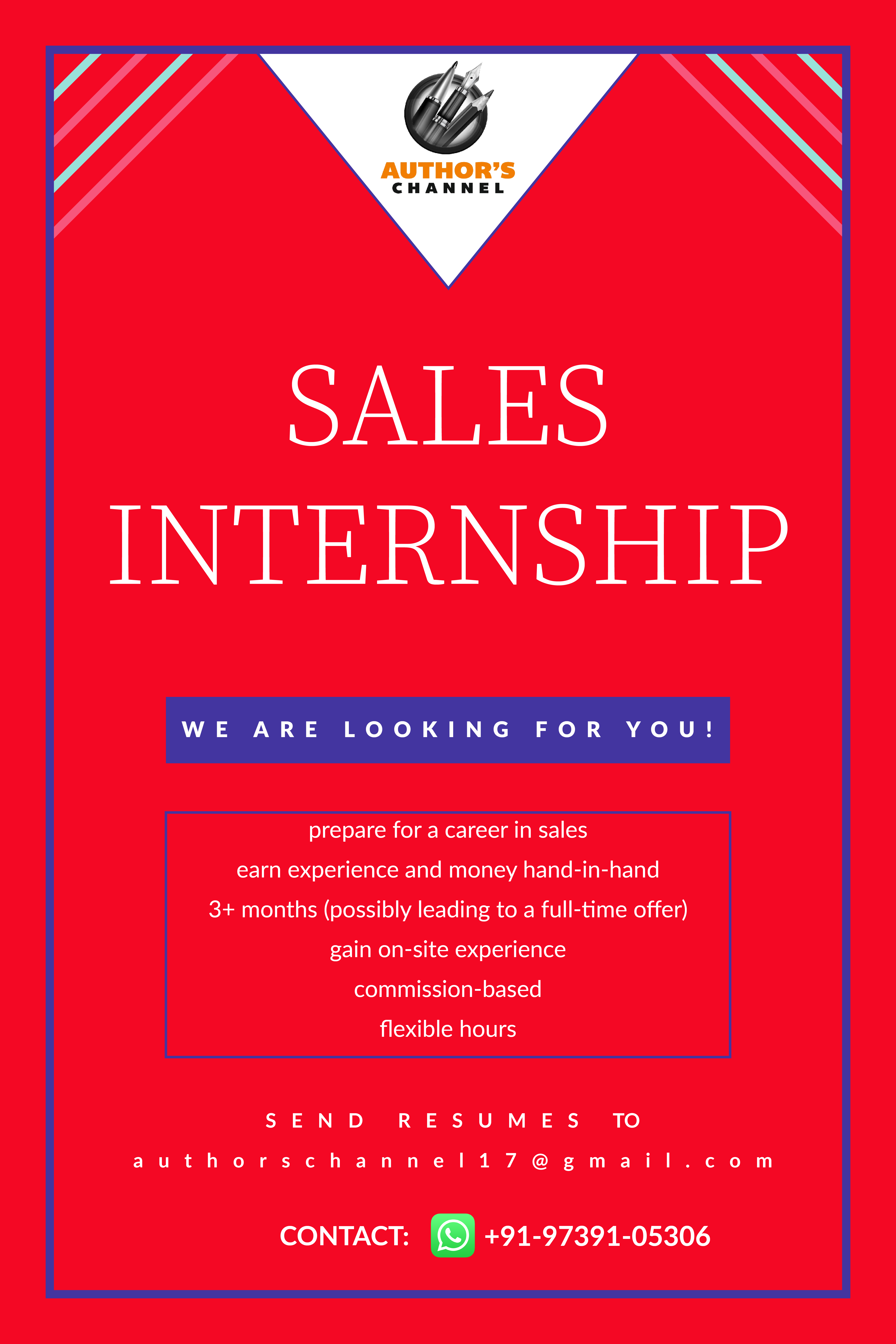 The intern will train under experienced sales associates to procure purchase orders for books published by Author's Channel. This is a three-month long internship, which can result in a full-time offer based on performance metrics.
